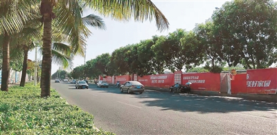 10月30日上午,记者走访那大兰洋路夏日广场段时发现,之前本报曾报道建筑工地围挡扭曲变形、歪倒,围挡上的大型公益广告破损严重等现象已不存在,目前,围挡原先破损的广告界面已变成了整齐的广告标语,街道干净整洁。