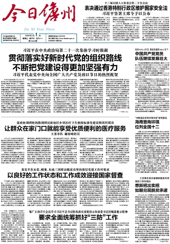 今日儋州 头版 A01 2020-07-011 2020年07月01日 星期三