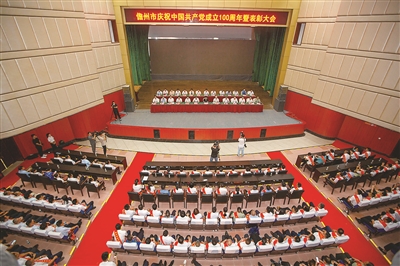 6月28日,儋州市召开庆祝中国共产党成立100周年暨表彰大会,回顾党的100年光辉历程,讴歌党的丰功伟绩,颁发“光荣在党50年”纪念章,表彰一批优秀共产党员、优秀党务工作者和先进基层党组织。会议号召,全市各级党组织和广大党员要以榜样为力量,不忘初心、牢记使命,在全面深化改革开放中当先锋、做表率,为加快推进海南自由贸易港建设、高质高效建设海南西部中心城市作出新的贡献。