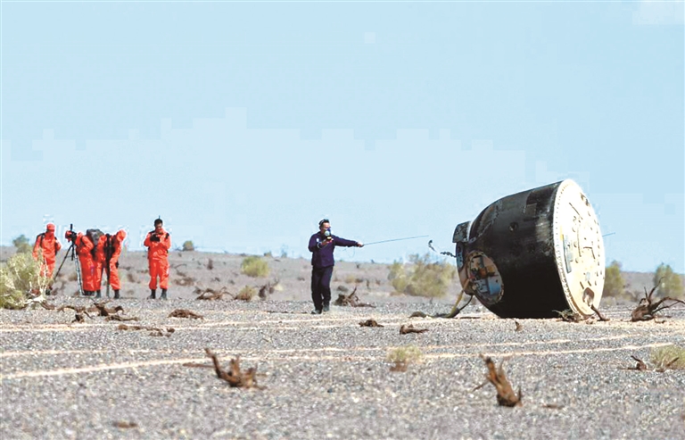 9月17日,神舟十二号返回舱安全着陆在东风着陆场。