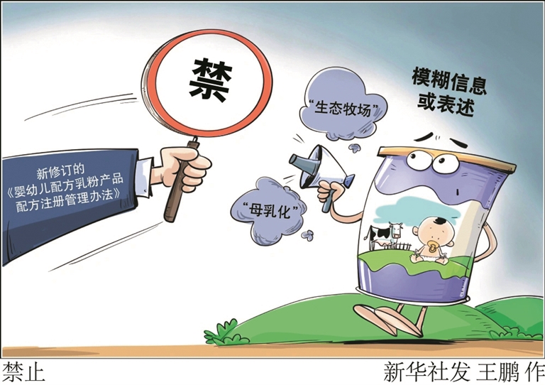 婴幼儿配方乳粉产品的标签、说明书中将不得含有“生态牧场”“母乳化”等模糊信息或表述。市场监管总局7月10日发布新修订的《婴幼儿配方乳粉产品配方注册管理办法》,自2023年10月1日起施行。