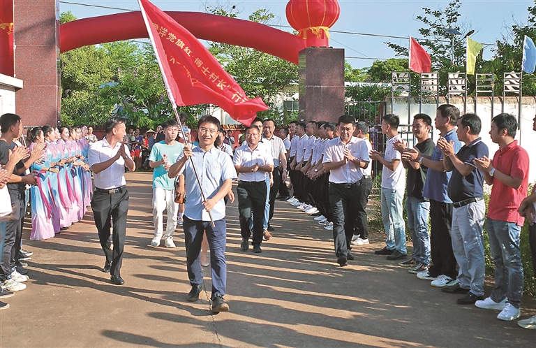 6月29日,“儋洋党旗红·博士村长”入村欢迎仪式在南丰镇油文村委会举行 ,深入推进“儋洋党旗红·博士村长”行动,进一步推动构建博士团联村助村机制,加快推动油文黎苗特色产业建设,营造博士村长工作的良好氛围。