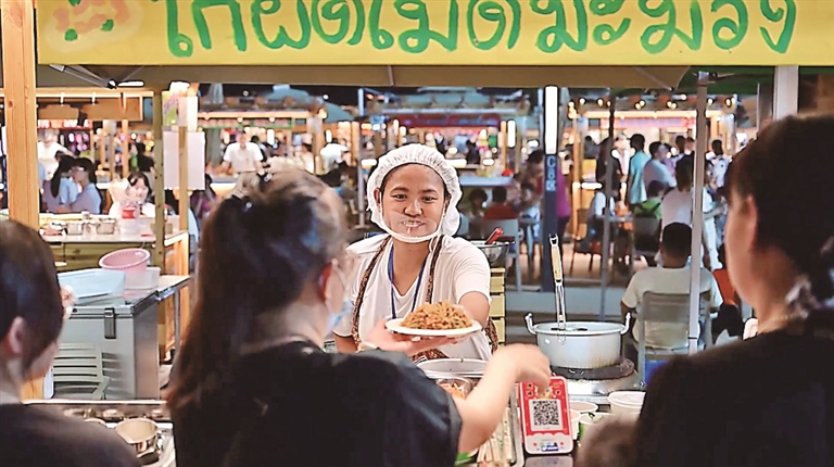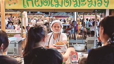 据悉,该市集面积达6万平方米,有着600余个小吃与文创摊位。包含音乐餐吧区、文创工艺区、小吃餐饮区、酒吧区、自由演绎区等业态区域,聚集超700个国内外餐饮、文创商家,集夜游、夜购、夜娱为一体。在美食区的300多家小吃商户中,160多家小吃由泰国人经营。