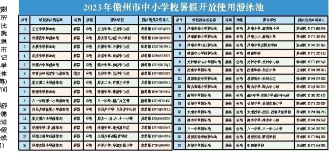 “暑假就近游泳活动是指暑假期间,以学生居住地所在镇为主,到所在镇学校游泳池参加游泳活动。比如说木棠镇学生原在那大某学校就读,暑假期间回到木棠镇,就到木棠中学游泳池参加暑假游泳活动。”市教育局体卫艺科负责人黄海告诉记者,今年暑假,除了开放28个中小学校29个游泳池外,全市各中小学校体育场所(含运动场、操场、各类球场等)也将向本地学生免费开放使用,时间是每日9:00至19:00。