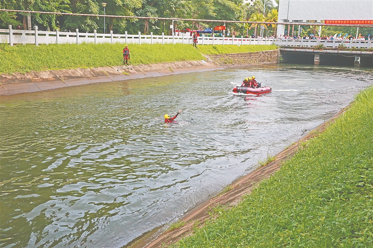 救援演练模拟背景是那大镇发生3名学生溺水,经市、镇、村各方力量及时施救,加上正确的心肺复苏按压,3名溺水者全部获救。演练中,应急救援人员接报后迅速携带应急救援设备赶往现场进行应急救援处置,顺利将溺水学生营救上岸实施抢救。