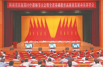 9月8日,海南省庆祝第39个教师节大会暨全省基础教育高质量发展动员部署会在海口举行,表彰优秀教师,弘扬尊师重教社会风尚,加快推进我省基础教育高质量发展。省委书记冯飞讲话,并代表省委、省政府向全省广大教师致以节日问候。省长刘小明等省领导出席。