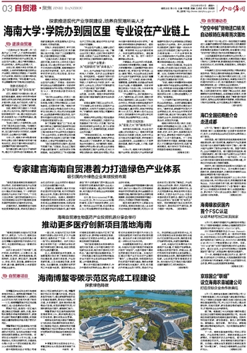 海南大学相关负责人表示,目前,海南大学持续推进与三亚、文昌、万宁和儋州等市县建设科研平台,在澄迈、保亭、定安、东方、琼中、临高等市县开展了农业、教育等多方面的产业服务,建设了30多个服务基地。下一步将更好发挥学校对国家、海南重大战略的人才支撑和技术服务作用,扛起“海南有需求,海大有作为”的使命担当,积极服务海南自贸港建设。