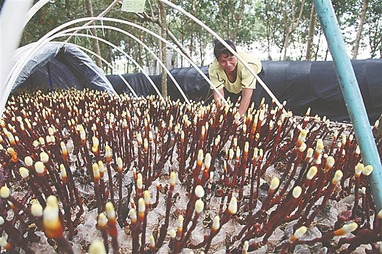 爽脆鲜嫩的树仔菜原本是一种产自海南五指山、适宜食用的野菜,经过“驯化”后在餐桌上逐渐为人所知,极大满足了消费者日益多元化的饮食需求。近年来,在海南优惠源生态农业发展有限公司的带动下,那大镇侨南村委会引进树仔菜种植,产业发展规模不断壮大,成为当地农户致富增收的一项重要来源。目前,在侨南村委会,树仔菜种植面积已达113亩,每亩年产量超过2500斤。