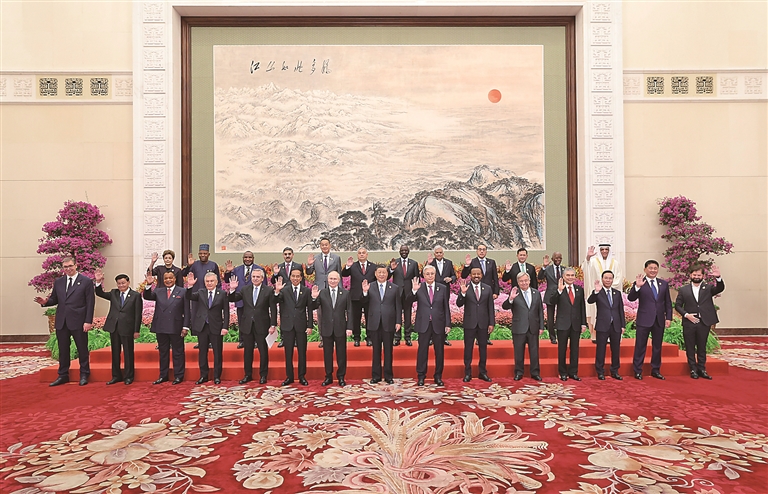 金秋时节,天高气爽,风清日朗。天安门广场上,共建“一带一路”国家国旗迎风飘扬,相映成辉。