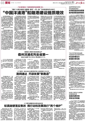 “中国洋浦港”船籍港建设提质增效