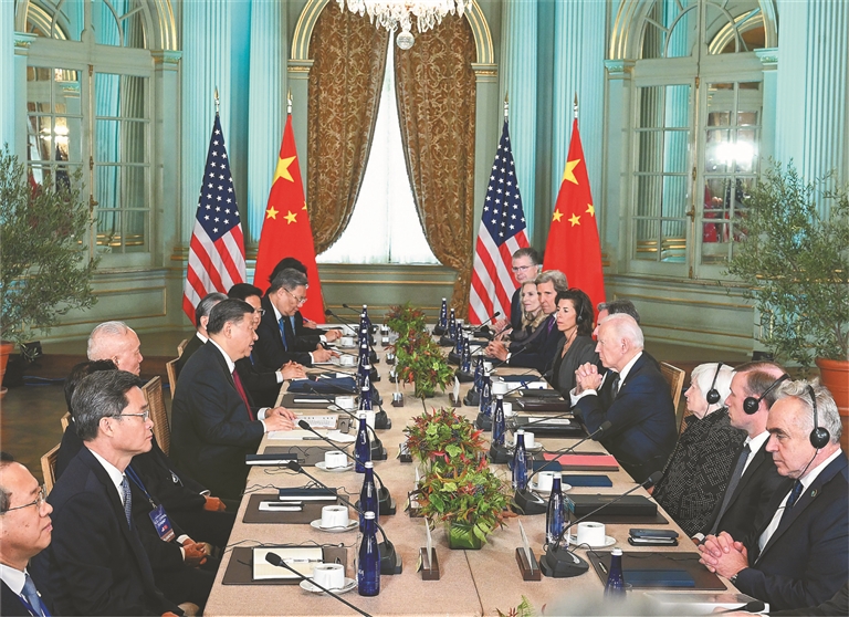 当地时间11月15日,国家主席习近平在美国旧金山斐洛里庄园同美国总统拜登举行中美元首会晤。两国元首就事关中美关系的战略性、全局性、方向性问题以及事关世界和平和发展的重大问题坦诚深入地交换了意见。