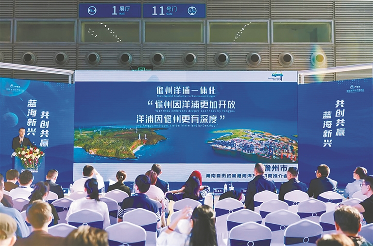 海博会期间,海南省携相关市县、园区及企业代表开展主题为“蓝海新兴 共创共赢”的2023年海南自由贸易港海洋产业招商推介会。会上,洋浦国际代表儋州洋浦向国内外嘉宾展示了儋州洋浦的规划和政策、海洋产业规划情况等内容,旨在加大海南自由贸易港海洋产业专题招商推介的力度,推动儋州洋浦海洋经济高质量发展。