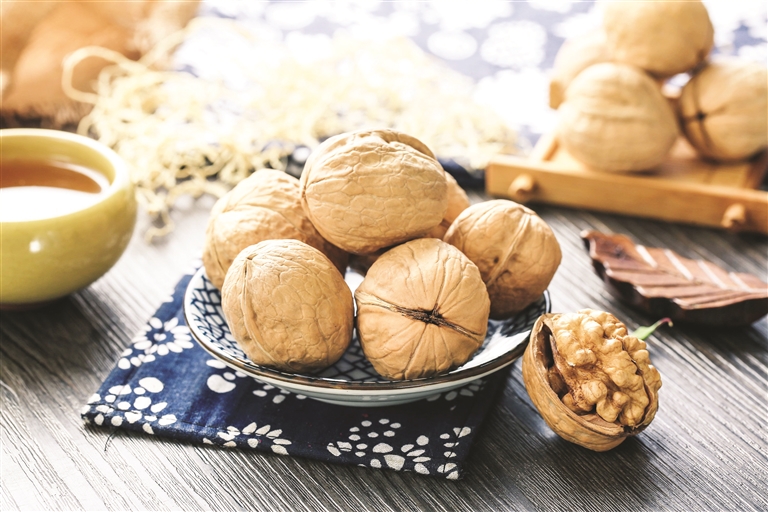 核桃:能补肾固精、温肺定喘,又能益气养血、润燥润肠。捣碎后与粳米同煮,有补肾、益肺、润肠的功效。