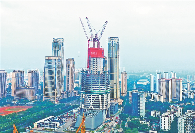 承建海南中心项目的中建三局现场负责人告诉记者,目前该项目核心筒第18次顶升顺利完成,正全力向200米高度冲刺。