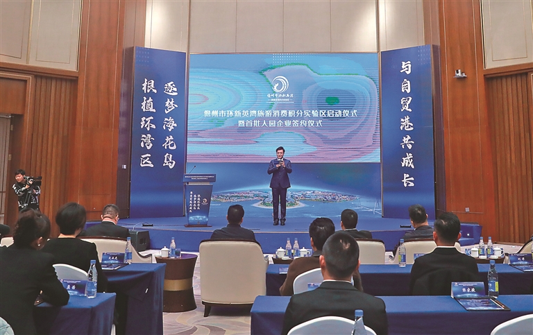 12月22日上午,儋州市环新英湾旅游消费积分实验区启动仪式暨首批入园企业签约仪式在海花岛举行。