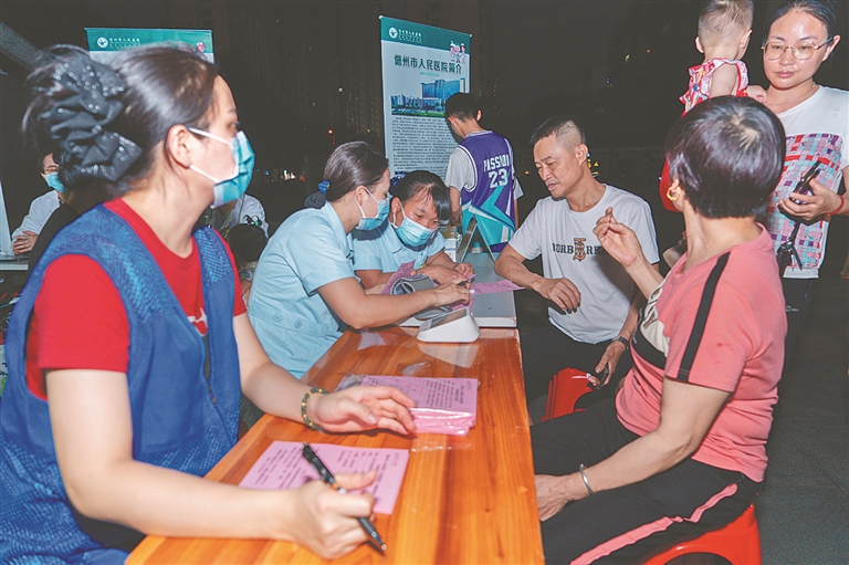 当天19时30分,市人民医院党委办党支部、肿瘤内科党支部、急诊科党支部、肝胆胰脾外科党支部、退休干部职工党支部及行政办、医务科、科教科、儿科、胸外科、呼吸内科、心血管内科、消化内科、中医科、肾内科、泌尿外科、产科共30多名工作人员抵达现场开展义诊活动。