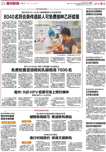 8040名符合条件适龄人可免费接种乙肝疫苗