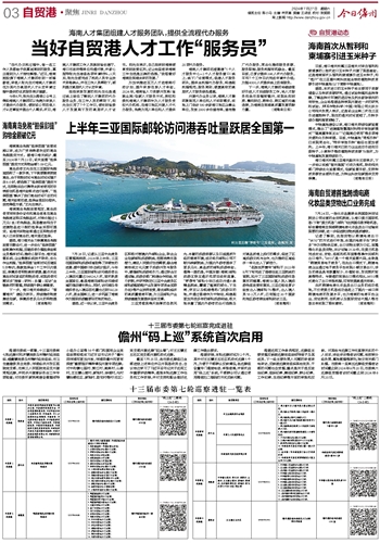 上半年三亚国际邮轮访问港吞吐量跃居全国第一