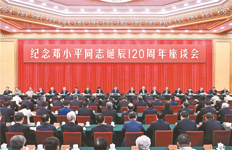 中共中央22日上午在人民大会堂举行座谈会,纪念邓小平同志诞辰120周年。中共中央总书记、国家主席、中央军委主席习近平发表重要讲话。他强调,邓小平同志是全党全军全国各族人民公认的享有崇高威望的卓越领导人,伟大的马克思主义者,伟大的无产阶级革命家、政治家、军事家、外交家,久经考验的共产主义战士,党的第二代中央领导集体的核心,中国社会主义改革开放和现代化建设的总设计师,中国特色社会主义道路的开创者,邓小平理论的主要创立者,为世界和平和发展作出重大贡献的伟大国际主义者。他对党、对人民、对国家、对民族、对世界作出了突出贡献,功勋彪炳史册、永励后人。
