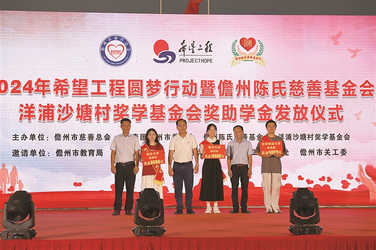 8月21日,由市慈善总会、团市委、儋州陈氏慈善基金会等主办的2024年希望工程圆梦行动暨儋州陈氏慈善基金会奖助学金发放仪式在洋浦经济开发区沙塘村举行,为72名优秀学子发放20.7万元奖助学金。