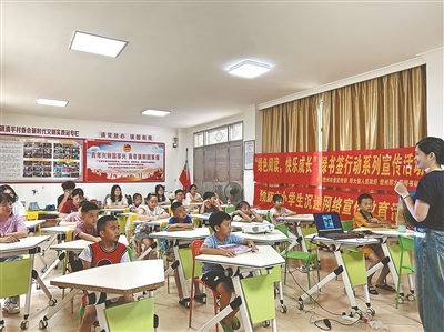 “阅读引领着我们前进,伴随着我们成长,让我们继续保持热爱阅读的心,与书相伴成长。”8月16日,为进一步引导广大少年儿童爱读书、读好书、善读书,营造浓厚的阅读氛围,发挥优秀出版物的引领作用,市委宣传部联合市“扫黄打非”办、南丰镇人民政府、儋州市新华书店有限公司在南丰镇马岭排苗族村开展“新时代乡村阅读季”暨“绿书签行动”系列宣传活动。志愿者通过分享自身的读书经验,向小朋友们介绍阅读的重要性,鼓励小朋友们从小培养良好的阅读习惯,不断提升语言表达能力、想象力和创造力。