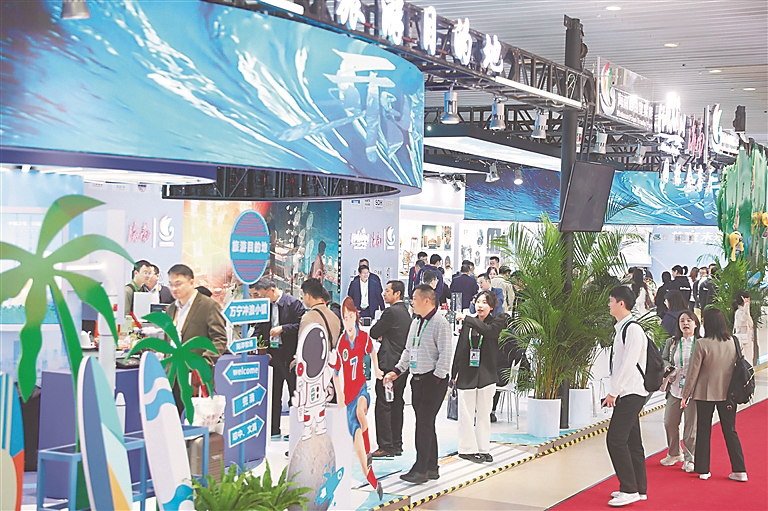 嫦娥六号探测器模型、“奋斗者”号全海深载人潜水器模型……这些是中国馆内的明星展品,广受关注。中国馆还用视频、图片、文字等方式,介绍了海南以“五个图强”打造新质生产力,以及中国国际消费品博览会、海南自贸港封关运作的重要配套设施——海口新海滚装码头客运综合枢纽站项目、海南首单跨境碳交易成功落地等情况。