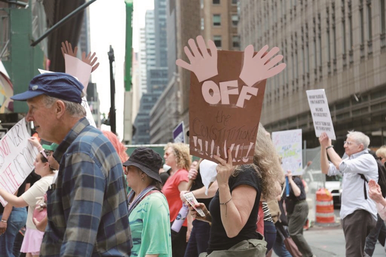 新华社记者现场采访、观察发现,抗议者除了对具体政策表达不满,更深层的担忧在于制度受到破坏以及宪法面临危机。不少标语牌都包含“正当程序”“宪法危机”“恢复民主”等关键词,体现了民众对美国民主与法治的深切忧虑。
