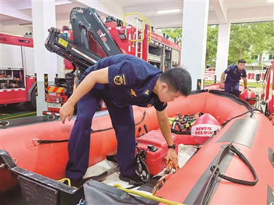 6月11日,儋州市消防救援支队积极开展防风防汛各项准备工作,时刻准备应对可能发生的各类抢险救灾紧急情况。