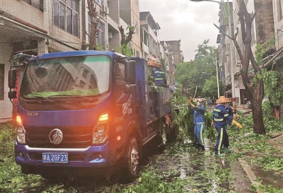6月11日,市园林局迅速组织工作人员对市区道路两旁的绿化树木和公园林木开展巡查,对存在潜在安全隐患的树枝进行修剪,确保人民群众生命财产安全。