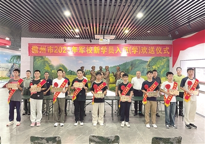 8月13日,儋州市2025年军校新学员入伍(学)欢送仪式在和庆镇歃血结盟纪念园举行,9名新学员胸戴红花,身披绶带,即将告别家乡,开启崭新的军旅生涯。