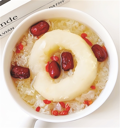 首先,食疗是应对“秋燥”最直接、最温和的方式。提倡“以润为健”,选择具有滋阴润肺、生津止渴功效的食物,如百合、梨、银耳、莲藕、蜂蜜、山药等食材,可以把它们熬制成汤羹或者粥品,包括冰糖雪梨、银耳百合羹,不仅美味,还从内滋养,为身体补充津液。同时,减少辛辣、油炸和烧烤类食物的摄入,以免加重津液耗伤。