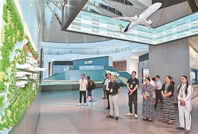 8月25日,正在参加“追梦中华·扬帆自贸港”2025海外华文媒体海南采访行活动的华文媒体代表走进海口江东新区展示中心,感知活力自贸港。
