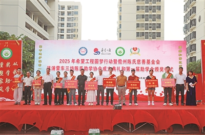 8月22日,由市慈善总会、儋州陈氏慈善基金会、洋浦雷车三坊陈氏助学协会等主办的2025年希望工程圆梦行动暨儋州陈氏慈善基金会洋浦雷车三坊陈氏助学协会成立典礼和第一届助学金联合颁发仪式举行,为95名优秀学子发放33.6万元奖助学金。