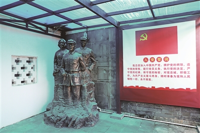 步入中共琼崖特委、琼崖纵队总部旧址二楼,一组塑像格外引人注目——四人围桌或坐或立,桌上摆着乌灯、茶壶,以及一张琼岛地图。“这组塑像复原的是当时琼崖纵队在此召开军政会议的情景。”李绍均介绍说。