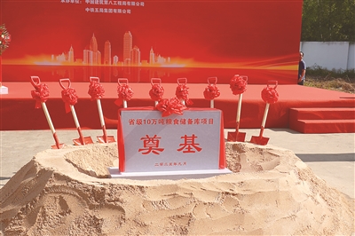 省级10万吨粮食储备库项目是我省2025年重大项目之一,由中国建筑第八工程局有限公司、中铁五局集团有限公司联合承建。项目占地面积约1.75公顷,设计粮食仓容达10万吨,由10栋新型上下双层浅圆仓构成,建筑高度52.4米,是目前国内首创、国际领先的双层集约化粮仓工程。