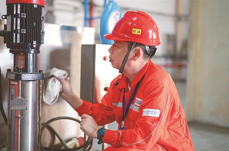 2001年,中海油正式收购洋浦电厂,这家承载着海南电力希望的企业从此迈入新的发展阶段。但技术升级的脚步从未停歇:2003年,机组完成极具里程碑意义的“油改气”重大技改工程,彻底告别传统燃油,全面切换为清洁高效的天然气燃料;2014年、2015年,胡诚又带领团队推进低氮燃烧系统改造,启动LNG与海上天然气的混合调试……