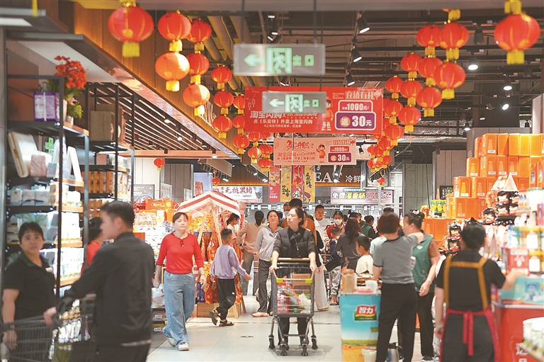 马年春节将至,儋州那大城区处处洋溢着喜庆的氛围,各大商超、农贸市场人头攒动,市民采购年货“马”力全开。